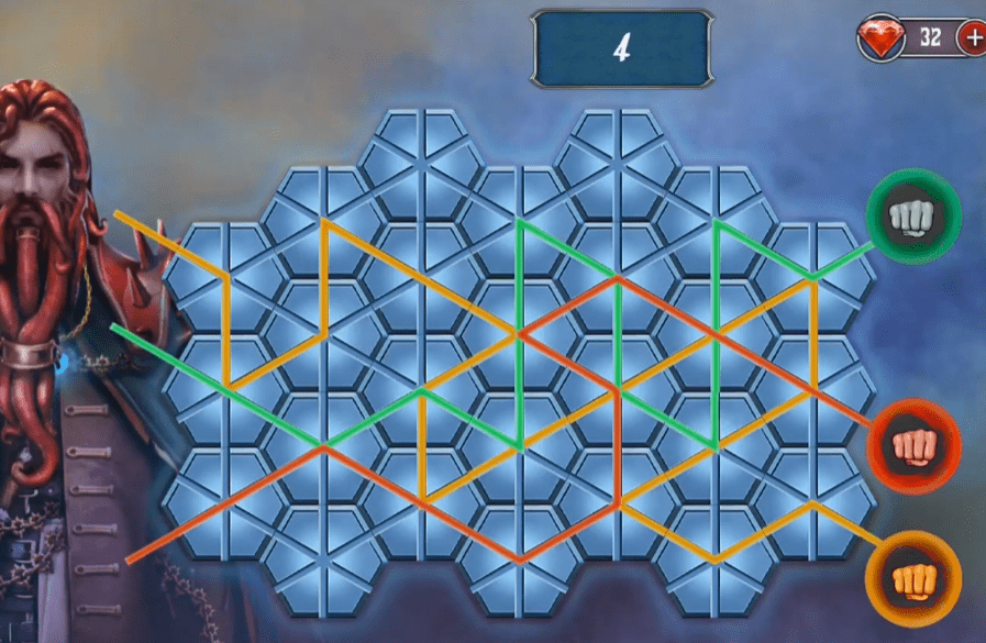 To win the fight with Jones, you need to solve the puzzle in 25 moves by making each line continuous. Below is the solution.