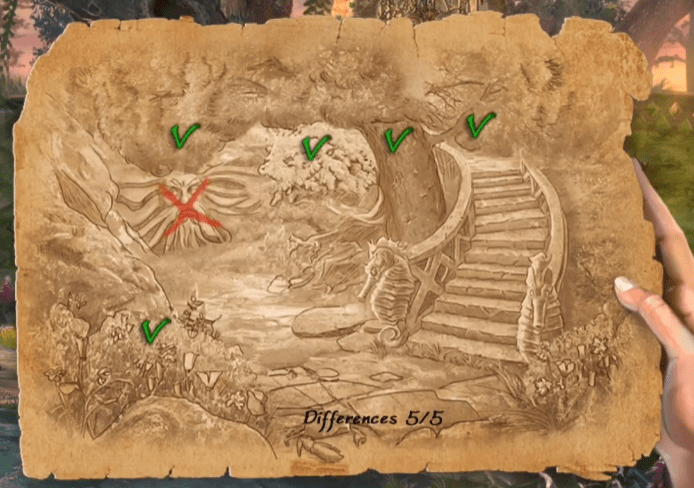 To find Horn of Neptune, first need to confirm that you are at the right place by finding 5 differences on the map.