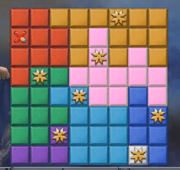 To win the fight with cursed Adam, you need to solve the puzzle by placing one star in each colored region, stars can’t touch horizontally, vertically or diagonally. Here is the solution.