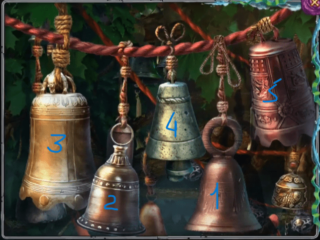 To get new bell, you need to complete the image on the chest. Move the discs into the correct slots, the disk can’t be swapped if it is in the right place. Then rotate the disks to get the final picture. And again the disk won’t move if it is in the right position. Below is the final picture of this puzzle.