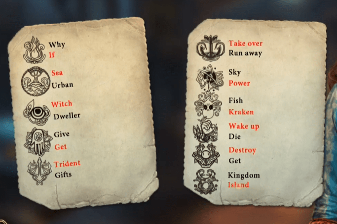 Puzzle with choosing correct words from every pair to learn Sea Witch’s plan: