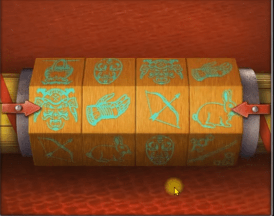 - Zair’s office (fighting arena), symbols on the right wooden column by the red curtain